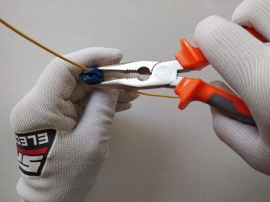 Cerrar la tapa y presionar con alicate para finalizar la conexión.